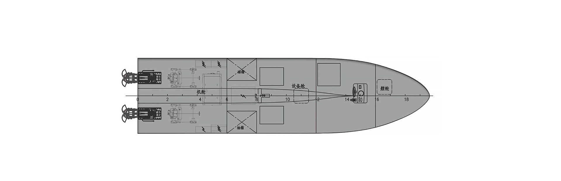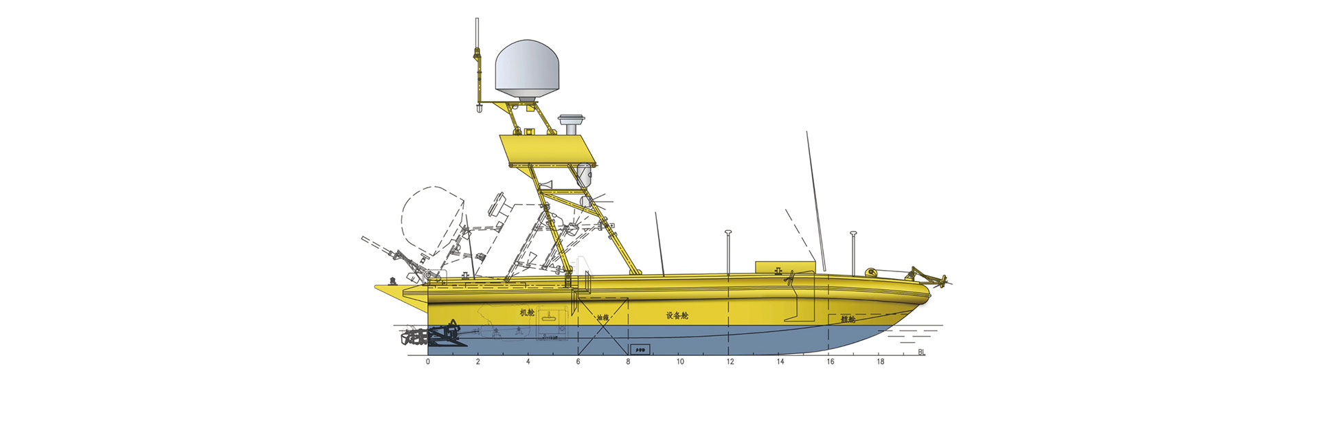 船长(m):11.5 型宽(m):2.53 型深(m):1.56 续航力(海里):300 排水量(t):7.0 平均吃水(m):0.6 航速(kn):25.0 发动机(kw):177*2 抗风等级:8级