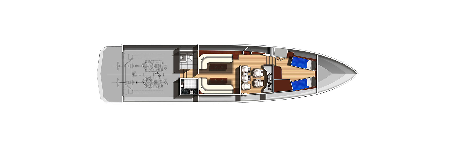 总长(m):19.7 型宽(m):4.8 型深(m):2.7 吃水(m):1.0 主机功率(kw):907×2 设计航速(kn):45.0 水线长(m):18.7 航区:沿海航区 乘员(人):15 续航力(海里):300