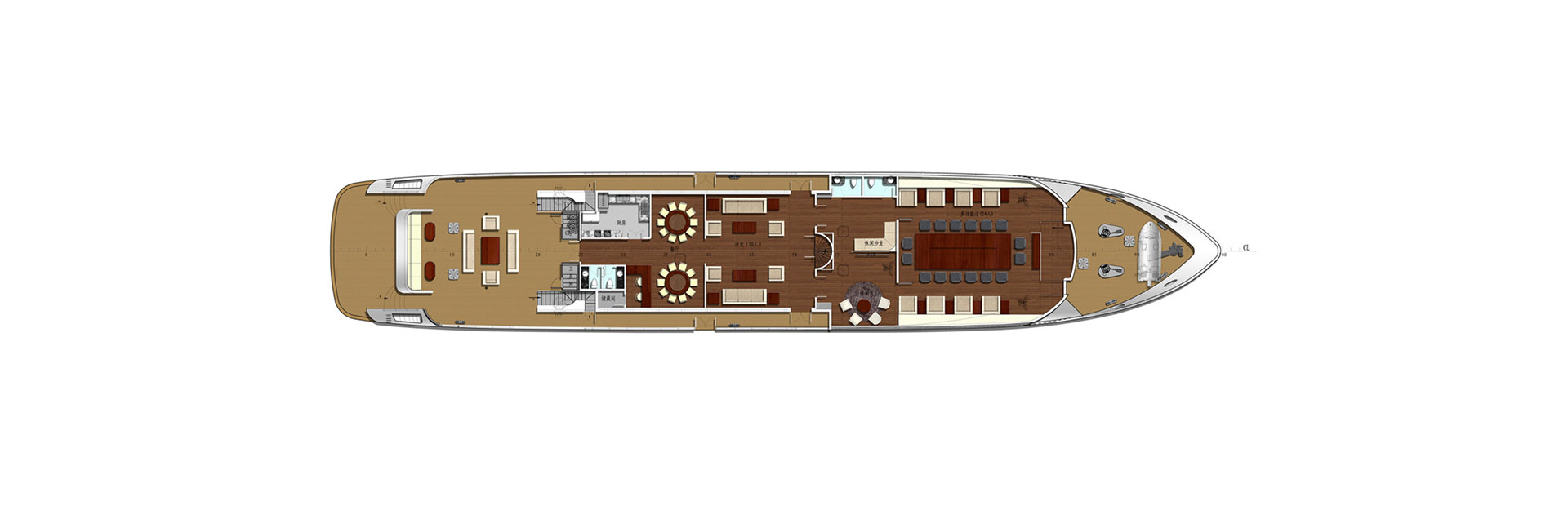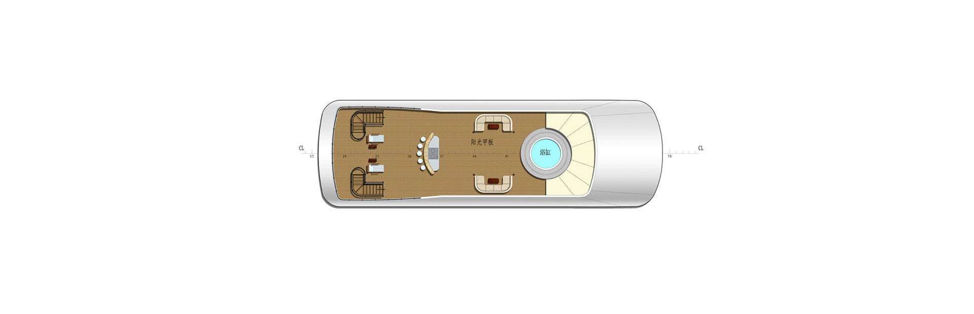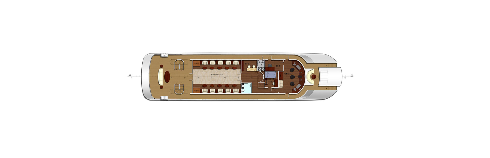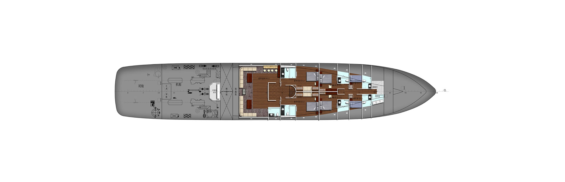 船长(m):52.0 船宽(m):9.2 吃水(m):2.0 水线长(m):49.0 主机功率(kw):522*2 设计航速(kn):15.0 航区:沿海航区 乘员(人):85 续航力(海里):1200 推进方式:常规直轴推进