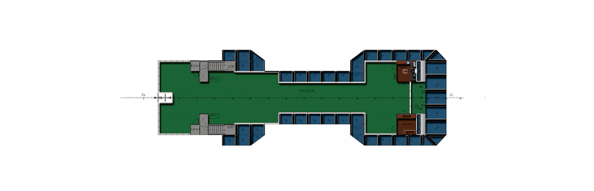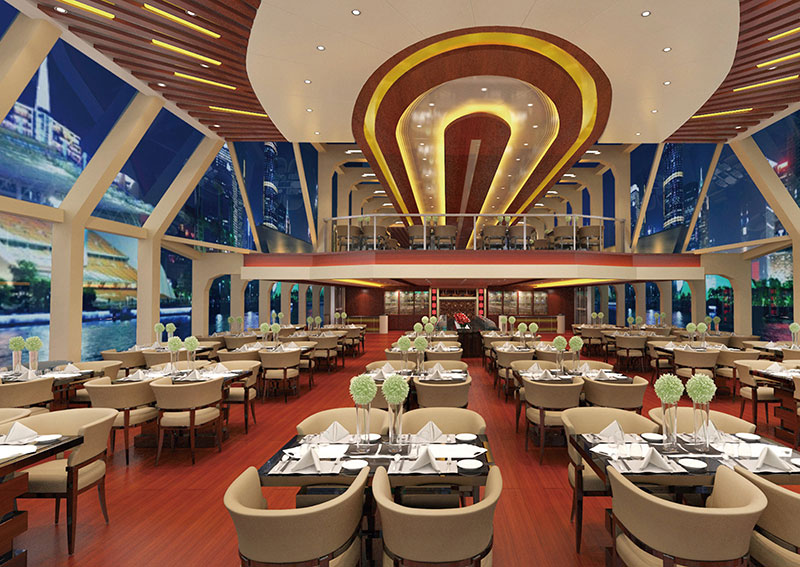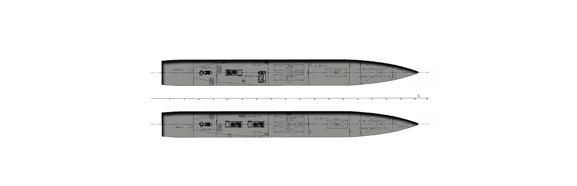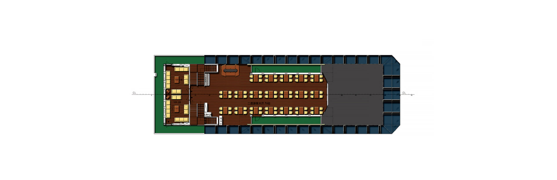 船长(m):45.2 船宽(m):13.5 吃水(m):2.5 水线长(m):43.5 推进电机(kw):200*2 设计航速(kn):10.0 航区:内河B级 乘员(人):390 续航力(海里):1480 推进方式:柴电推进