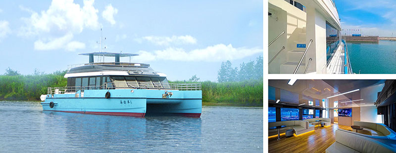 静谧舒适新标杆:凭借双体船型天然优势与FRP复合材料特性,船舶振动噪音大幅度降低,配合宽敞的72人载客空间,无论是日间观光还是夜间巡航,都能享受无拘无束的惬意旅程。